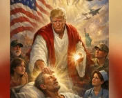 Στην εικόνα παρουσιαζόταν ο Ντόναλντ Τράμπ σαν μια μορφή που θυμίζει τον Ιησού Χριστό, με φως να βγαίνει από τα →