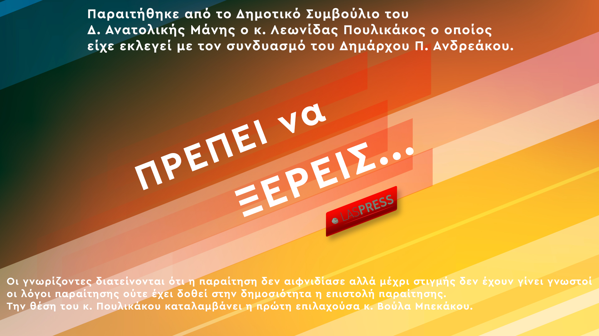 Δ. Ανατολικής Μάνης Αποχώρησε από το Δημοτικό Συμβούλιο ο Λ.Πουλικάκος